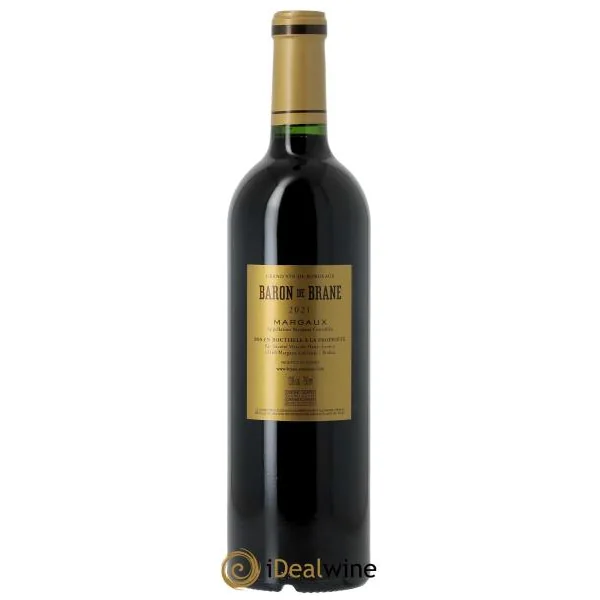Second vin du domaine, Baron de Brane est issu de jeunes vignes (environ 25 ans), implantées sur des parcelles de graves profondes argileuses situées sur la troisième terrasse du plateau de Brane, terroir reconnu pour favoriser la maturité homogène des raisins et la finesse tannique. Il est vinifié en cuves bois et cuves inox et élevé durant 12 mois en barriques (30 % de barriques neuves), selon les mêmes principes exigeants que le grand vin, avec une sélection rigoureuse des lots et un élevage visant à préserver la pureté du fruit et l’équilibre du vin. À la dégustation, son nez est bien aromatique, avec des arômes de mûre, de cassis et de fruits rouges, ainsi que des notes florales, parfois complétées par des nuances d’épices douces et de violette caractéristiques des vins de Margaux. La bouche est ample, ronde, généreuse et les tanins montrent une belle finesse ; l’ensemble est gourmand, soutenu par une belle fraîcheur et une structure équilibrée qui permettent une dégustation plus précoce, tout en conservant un bon potentiel d’évolution.