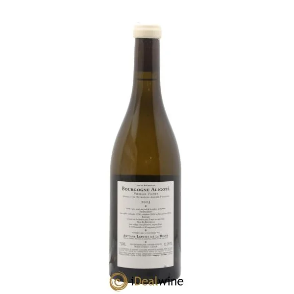 Quantité : 1 bouteilleObservations : 1 Étiquette très légèrement abimée, 1 Capsule cireNiveau : 1 NormalProvenance : particulierTVA récupérable : nonRégion : BourgogneAppellation : Bourgogne AligotéPropriétaire : Antoine Lepetit de la Bigne