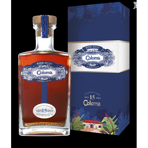 Distillé à partir de mélasse de deux variétés de canne, coloma 15 ans est vieilli dans des fûts de chêne américain, utilisés une fois pour vieillir du bourbon. S’ajoute une finition de minimum 5 mois dans des fûts de chêne ex-liqueur de café. Coloma 15 ans est ensuite hydraté avec de l´eau de source provenant des volcans de la cordillère colombienne, puis filtré et mis en bouteille à l’hacienda coloma