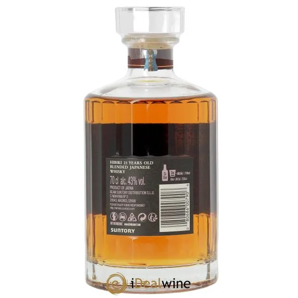 Cette eau-de-vie est l’un des joyaux de la maison Suntory, située sur l’île de Honshu, berceau du whisky japonais. Ce whisky d’assemblage incarne l’excellence et la tradition nippone. Cet alcool est le fruit de l’assemblage de whiskies des trois distilleries de Suntory : Amazaki, Hakushu et Chita pour le grain. Cette bouteille iconique et originale possède 24 facettes en référence aux vingt-quatre saisons japonaises. La robe se distingue à travers une couleur ambre profonde et lumineuse. Le nez, complexe et noble, dévoile des notes de prune mûre, de fruits secs, d’encens, de santal, de caramel et de cire d’abeille, accompagnées par une touche florale rare. En bouche, l’attaque est veloutée et enveloppante, évoluant sur une trame soyeuse de fruits confits, d’épices douces, de bois précieux et d’un umami raffiné. La finale, à la fois majestueuse et persistante, évoque des arômes savoureux de cuir, de miel et de fleurs séchées.